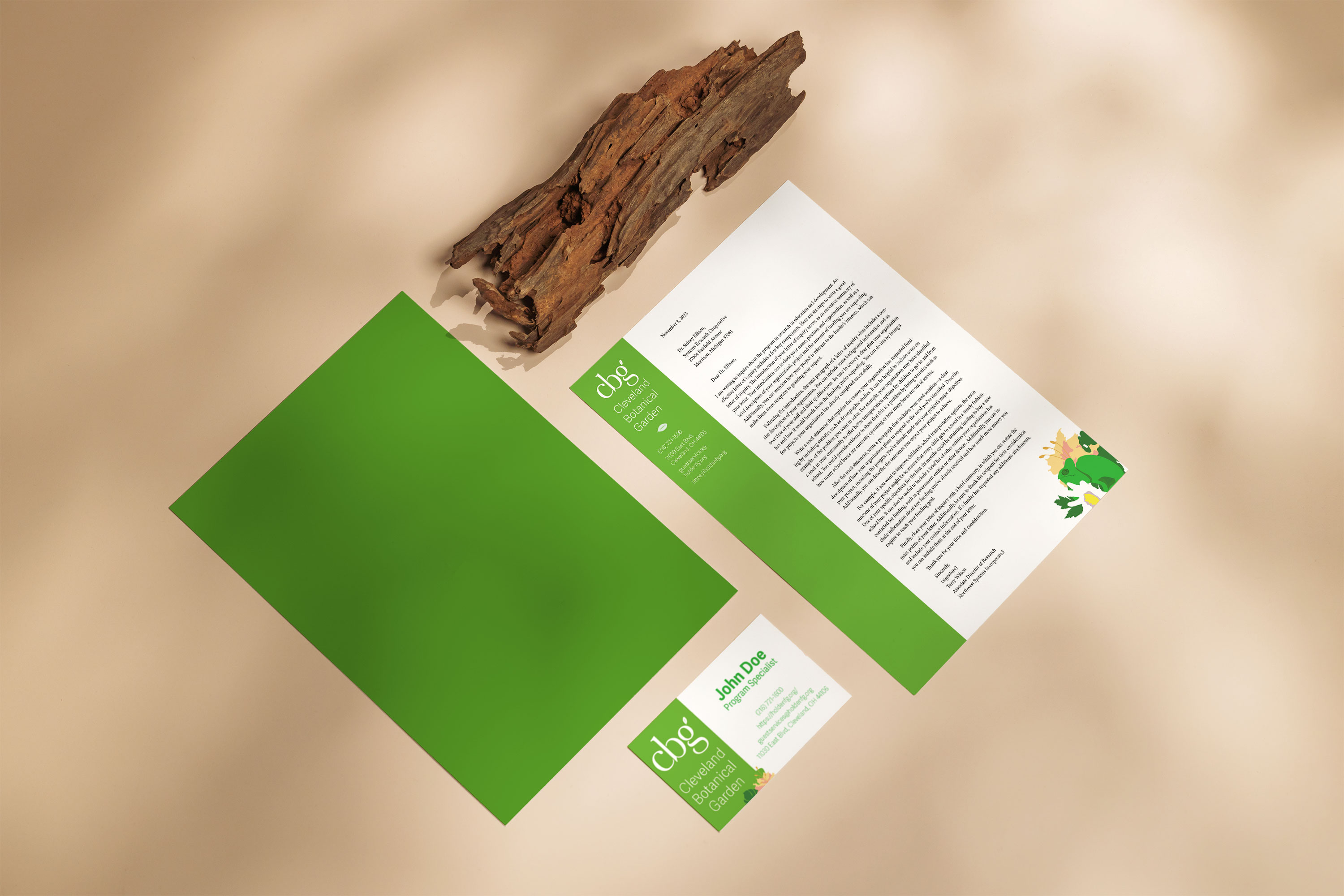 The first step of the project was to design the logo. The only Cleveland Botanical Garden logo felt very old-fashioned so this logo strives to create a modern feeling without losing the style the first logo had. This was done by shortening the name of the gardens, changing the typeface, and