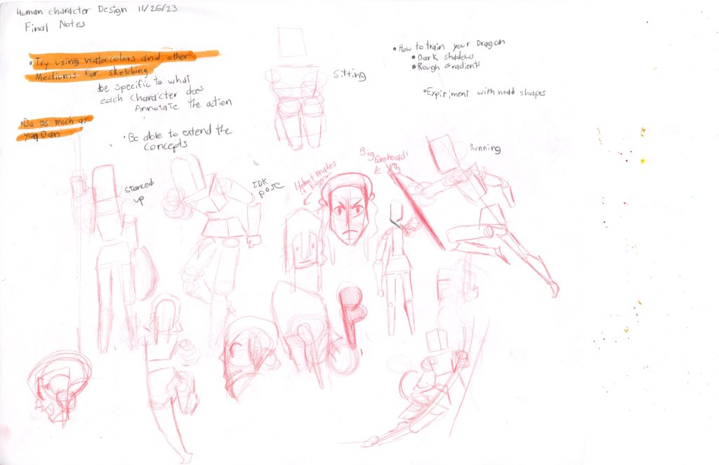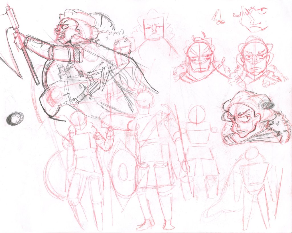 The project initially started with many exploration sketches to figure out what shapes and silhouettes would be the best to convey the type of character that would fit a “Savage Daughter”